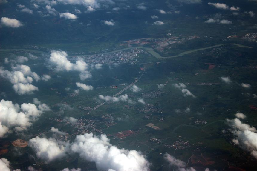 竞飞!飞机上拍摄另一架飞机高速飞行,穿越云层。 来源:航空圈
