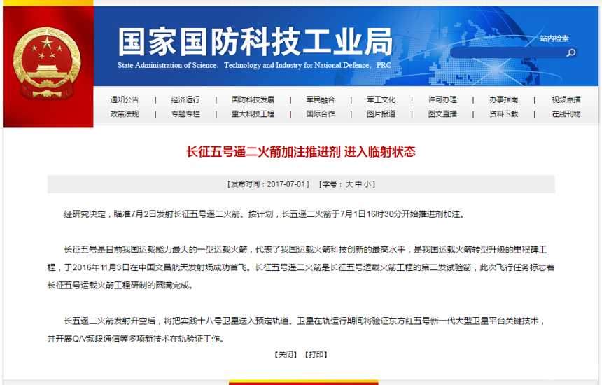 航空圈讯 国家国防科技工业局官方网站消息,7月2日19时23分,中国在海南文昌航天发射场组织实施长征五号遥二火箭飞行任务,火箭飞行出现异常,发射任务失利。后续将组织专家对故障原因进行调查分析。