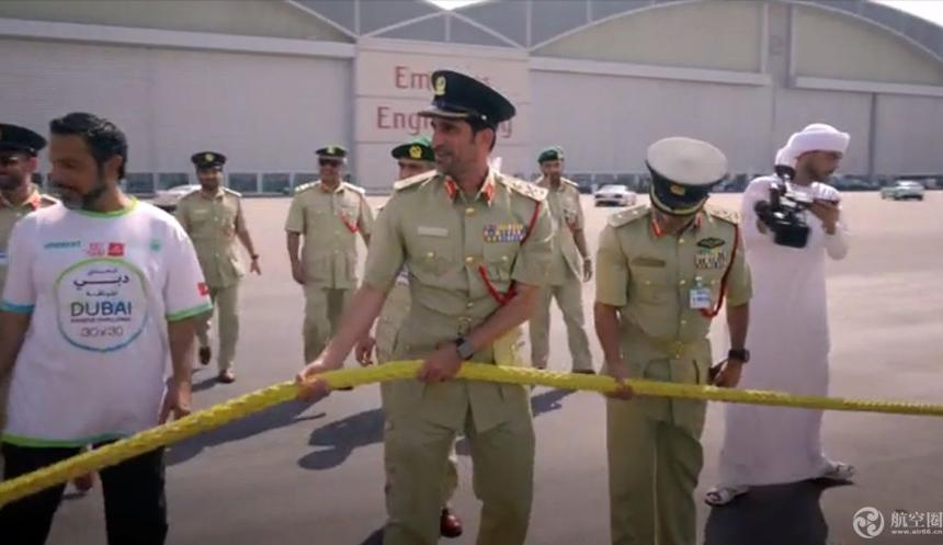 综合阿联酋媒体报道,在这次活动中,迪拜56名警察将阿联酋航空的一架重达302.68吨的A380客机拉出100米远。 他们打破了以往的纪录,此前100人在香港拉动了218.56吨重的飞机。
