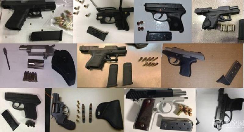 TSA统计数据显示,自2015年以来,全国性TSA检查站的枪支发现量增加了28%。而2016年TSA在全国机场没收了3391支枪支,其中83%的已经上膛。2017年全国各地机场已经发现枪支3 733件。 根据TSA官方网站,10月30日至11月5日这一周,TSA就在各地机场没收乘客携带的90把枪支。