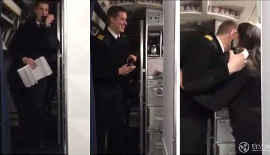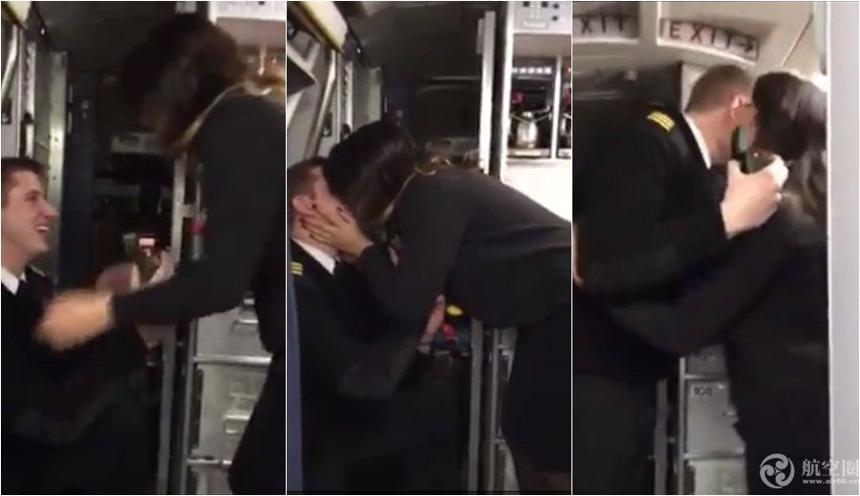 飞行员用飞机广播向空姐示爱 机舱掏出戒指单膝跪下求婚