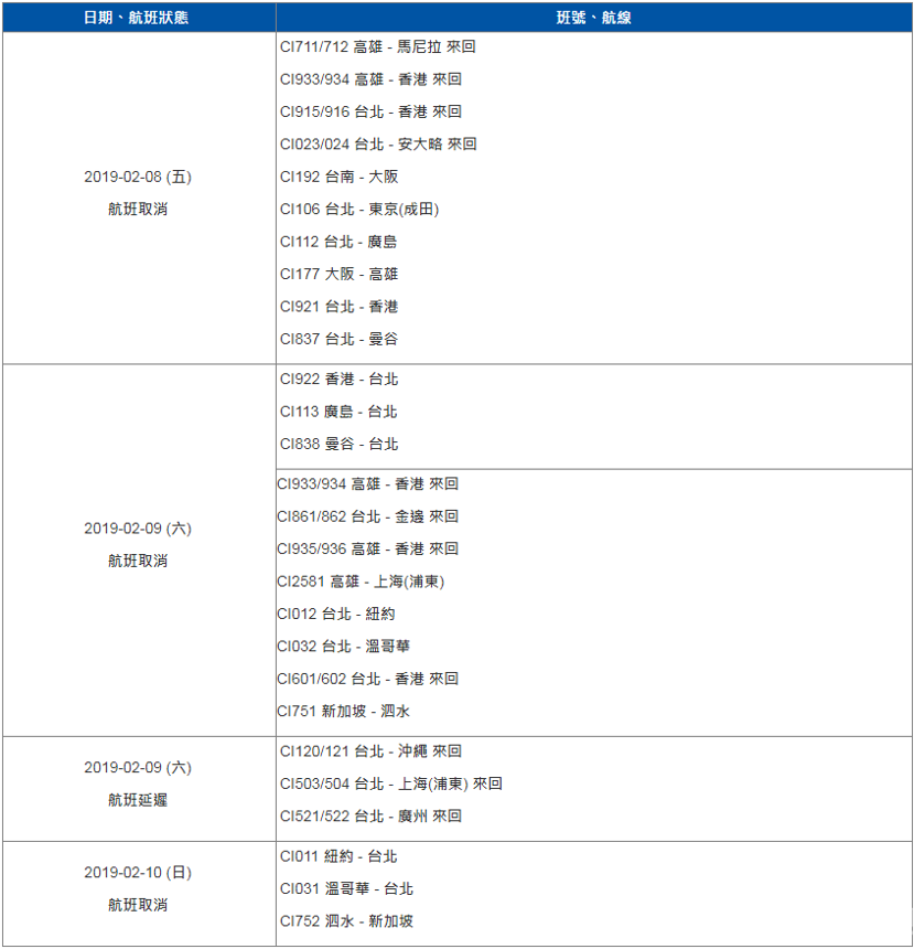 航空圈讯 台湾最大航空公司——中华航空爆发劳资争议,桃园市机师(飞行员)工会华航分会2月8日凌晨0点宣布8日(初四)清晨6点起开始罢工, 华航当天取消了14个航班,近2000名旅客受到影响,根据华航官网发布的消息, 加上2月9日和10日取消的航班,共有超过30班取消。