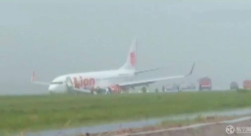 当地时间2月16日下午,印度尼西亚低成本航空狮航一架载有189人的客机,在暴雨中降落时失控,冲出跑道。