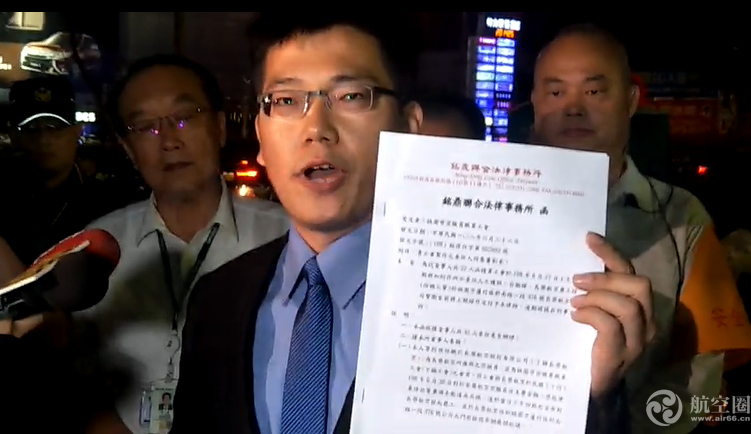 6月26日晚上,长荣航空委托律师蔡颐奕拿着32名空姐委托的律师催告函,前往空服员罢工区罢工纠察线前,向工会下达“最后通碟”,但是工会无人出面领取。