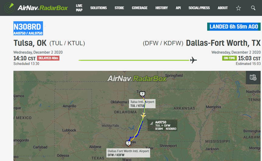 因为两起致命坠机事故后,波音737MAX已经被禁飞20个月。美国航空执行此次波音737MAX(注册号N308RD)试飞,航班号为AA9750,从德克萨斯州达拉斯飞往俄克拉何马州塔尔萨,时长约40分钟,美国航空高管及90余名记者被邀请乘坐试飞航班。