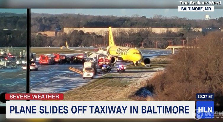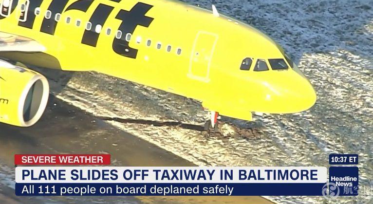 美国精神航空(Spirit Airlines)一架飞机在巴尔的摩的机场滑出跑道,所幸旅客并未受伤。
