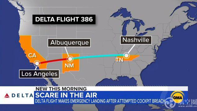 综合美国媒体报道, 当天从洛杉矶飞往纳什维尔的达美航空DL386 航班,因为该乘客的举动而于当地时间下午 2 点 20 分左右改降在阿尔伯克基国际机场(Albuquerque International Sunport)。