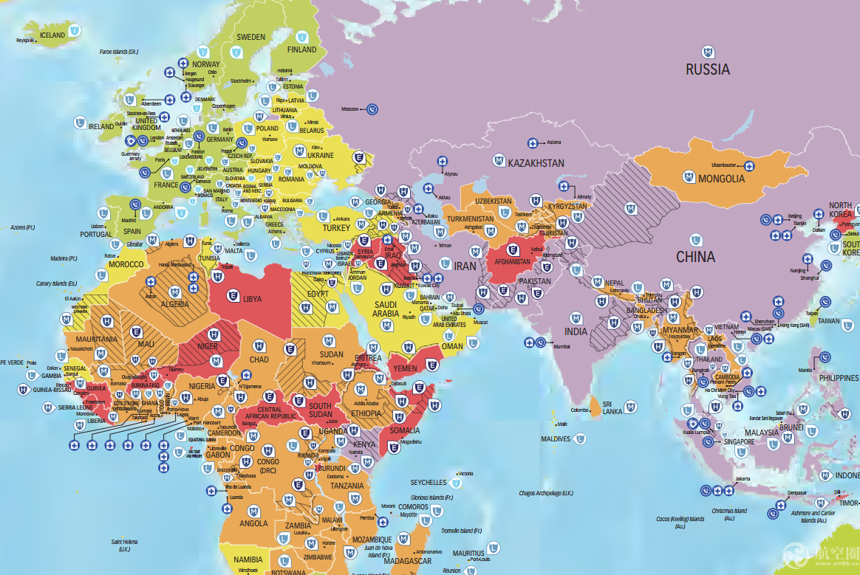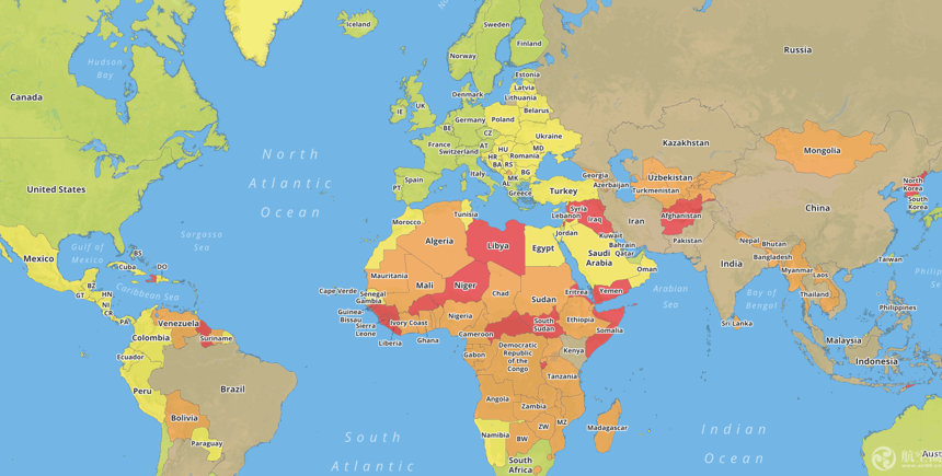航空圈讯 国际救援中心(International SOS)新近发布了2017年世界旅游风险地图(TRAVEL RISK MAP 2017),提醒旅游者应该避免去最危险国家旅游,选择低风险地区和医疗有保障地区旅游。