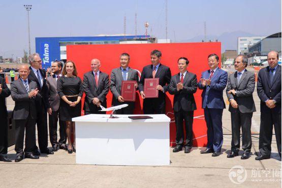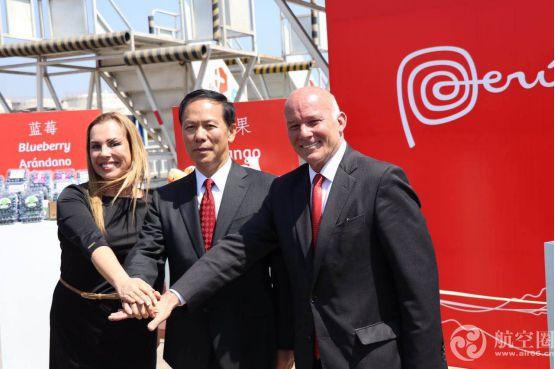 东航旗下东航物流公司在首航包机起飞之前,正式与秘鲁农业生产者协会签署了秘鲁蓝莓进口协议。此次东航全货机包机运载着中国第一批对秘鲁开放进口的芒果、蓝莓等农产品,对加强和便利两国之间的经贸往来具有重要意义,受到习主席和库琴斯基总统的积极评价。秘鲁政府高度重视此次货运航线的开通,秘鲁对外贸易及旅游部长爱德华费雷伊洛斯先生,交通通讯部副部长费雷拉莫莉尼女士,外贸部副部长爱德哥巴斯克先生与东航集团总经理、东航股份董事长刘绍勇,东航股份营销总监董波等领导和各界嘉宾一起,共同见证了东航全货机从利马起飞的这一历史性时刻。