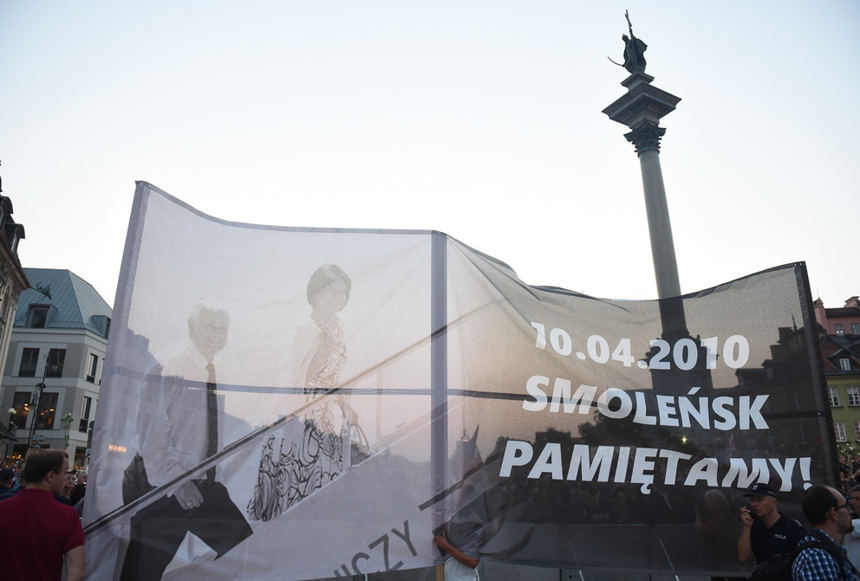 2017年8月10日,雅罗斯拉夫·卡钦斯基悼念8年前遇难的胞弟和同机遇难者。