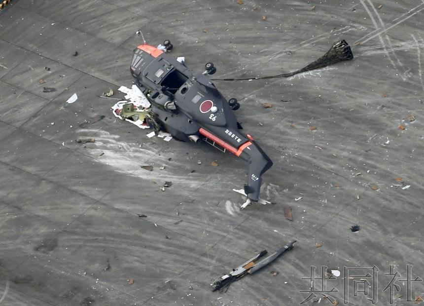 8月17日下午日本海上自卫队一架直升机训练中失衡翻倒,4人受伤。