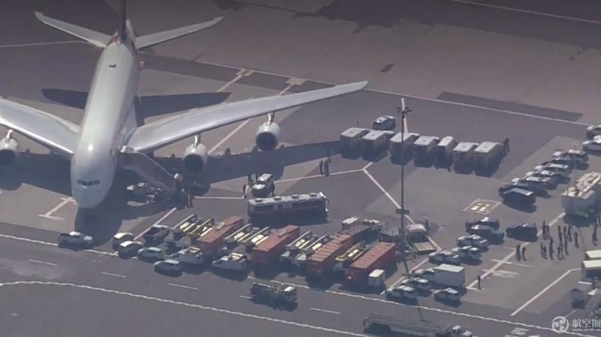 根据美国CBS的现场画面,至少7名空姐也走进了救护车接受检查。
