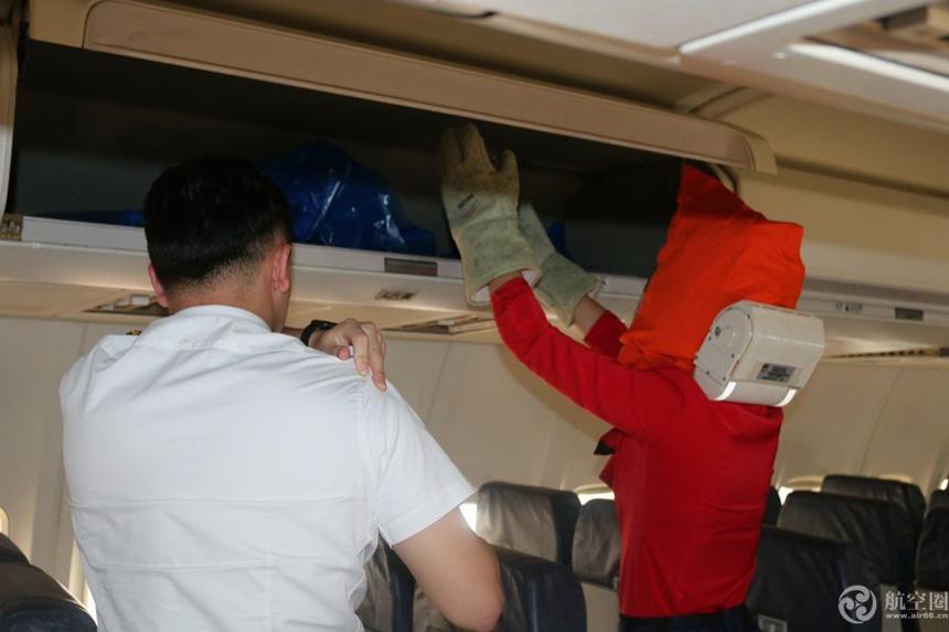 此次演练采用现场演练方式,包括模拟客舱锂电池冒烟失火的应急处置、信息报送及领导点评。